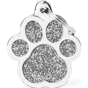 MyFamily Medaglietta per Cani Personalizzabile Zampa Glitter Grande Grigia - Made in Italy