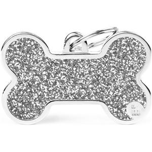 MyFamily Medaglietta Shine per Cani XL Personalizzabile a Forma di Osso Glitter Grigio