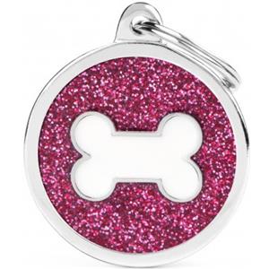 MyFamily Medaglietta per Cani Glam Osso Fucsia Piccolo con Strass Personalizzabile