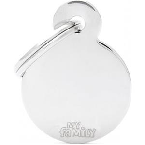 My Family Medaglietta per Cani e Gatti in Ottone Cromato, Cerchio Grande, Personalizzabile con Incisione