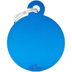 My Family Medaglietta Cerchio Grande in Alluminio Blu con Incisione Personalizzata per Cani e Gatti