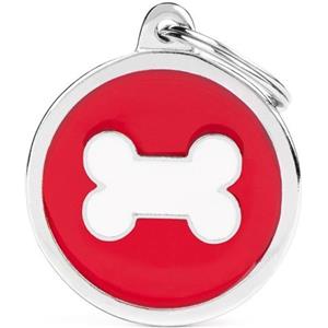 MyFamily Medaglietta per Cane Personalizzabile in Metallo Smaltato - Cerchio Grande Bianco con Osso Rosso