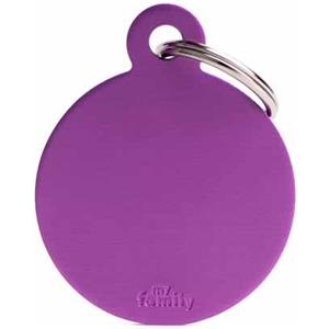 My Family Medaglietta per Cani Cerchio Grande in Alluminio Viola con Incisione Personalizzata