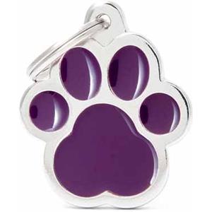MyFamily Medaglietta per Cane Personalizzata Viola - Zampa Grande, Incisione Gratuita, Made in Italy