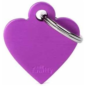 My Family Medaglietta per Cani Cuore Piccolo in Alluminio Viola con Incisione Personalizzata
