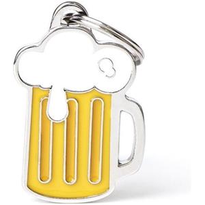 MYFAMILY Medaglietta Personalizzata per Cani e Gatti - Colore Bianco e Giallo, Metallo Argento