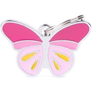 MyFamily Medaglietta Personalizzata per Cane e Gatto - Design Farfalla Rosa in Metallo Argento