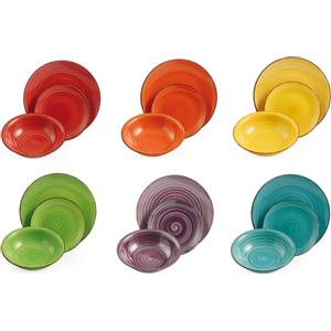 Villa d'Este Home Tivoli Villa d'Este Home Tivoli Baita Acquerello Servizio tavola 18 pezzi in gres dipinto a mano, 6 posti tavola diversi