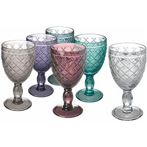 Villa d'Este Home Tivoli Set 6 Calici Vino 280 ml in Vetro con Superficie Lavorata - Colori Assortiti, Lavabili in Lavastoviglie