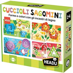 Headu Cuccioli Sagomini - Gioco Educativo in Legno per Bambini 2-4 Anni, Sviluppa Memoria, Forme e Colori