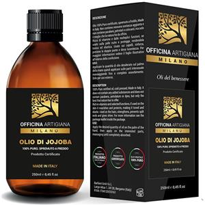 Officina Artigiana Milano Olio di Jojoba 100% Puro - 250 ml, Rivitalizzante e Nutriente per Pelle e Capelli