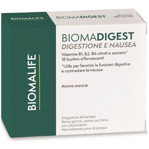 Unifarco Biomadigest 18 Bustine Effervescenti - Integratore con Vitamine B e Zenzero per Digestione e Nausea
