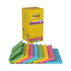 Post-It Super Sticky Z-Notes Assortiti - 16 Blocchetti da 90 Fogli 76x76 mm in Colori Assortiti (Giallo, Blu, Fucsia, Verde)