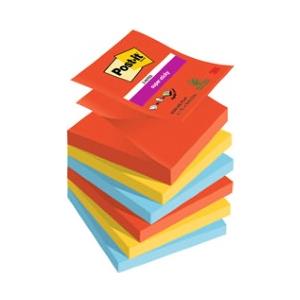 Post-it Foglietti Super Sticky Z-Notes Playful - 76x76 mm, 90 fogli per blocco, confezione da 6 blocchetti, colori vivaci Rosso, Giallo e Azzurro
