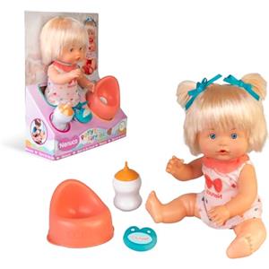 Nenuco Vasino con Sorpresa, Bambola da 25 cm, Corpo Rigido e Capelli Biondi, Beve Acqua con il Biberon Incluso, Fa Pipì e Apparirà una Sorpresa,con Ciuccio e 2 Fiocchi, + 2, Famosa (NFNB2000)