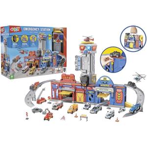 W'Toy Grande Stazione di Emergenza con Suoni e Luci, Megafono e 2 Modellini Auto Die-Cast - Pompieri e Polizia