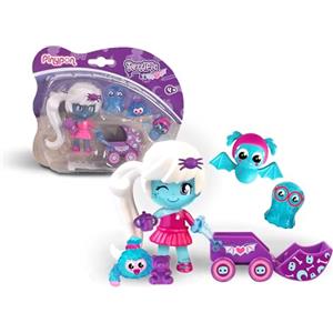 Pinypon - Terrific My Monsters & Me: Figura Ragazza Fantasma con 3 Animali Domestici e Passeggino, Decorazioni che Illuminano al Buio, per Bambini 4