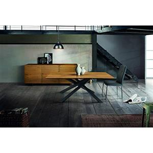 KONTE.DESIGN Tavolo PARIOLI in legno massello rovere grano 180x90 cm con gambe incrociate in metallo nero