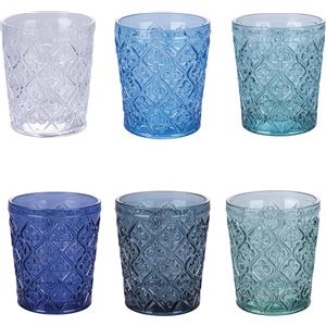 Villa d'Este Home Tivoli Set 6 Bicchieri Acqua Marrakech Ocean in Vetro Lavorato - Capacità 325ml