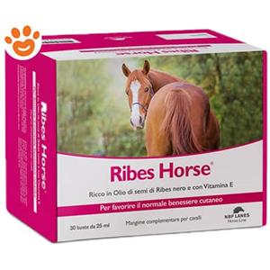 Ribes Horse - Mangime Complementare per Equini con Omega 3 e Omega 6, 30 Bustine da 25 ml per il Benessere Cutaneo