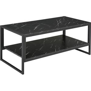 HOMCOM Tavolino da Caffè Nero con Effetto Marmo, Design Moderno, Telaio in Acciaio, 106x50x45cm, Ripiano Inferiore