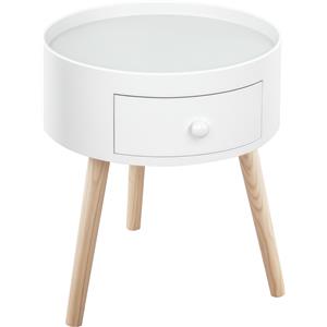 HOMCOM Tavolino da Salotto Moderno in Legno Bianco, Rotondo con Cassetto per Soggiorno e Camera
