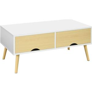 HOMCOM Tavolino da caffè rettangolare in stile scandinavo con 2 cassetti e vano aperto, 90 x 48 x 39 cm, bianco e naturale