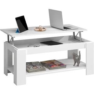 BAKAJI Tavolino da Caffè Soggiorno Bianco con Piano Rialzabile e Contenitore - Design Moderno in Legno Melaminico (100 x 50 x 43 cm)
