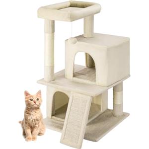 PawHut Albero Tiragraffi per Gatti a 5 Livelli con Cuccia, Giochi e Corda Sisal Beige