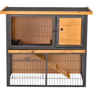 PawHut Conigliera in Legno a 2 Livelli con Casetta, Rampa e Vassoio Estraibile per Conigli e Porcellini d'India, 91.5x53.3x73cm, Grigio