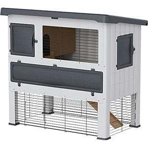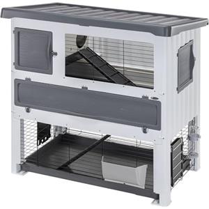 PawHut Conigliera in Legno a 2 Livelli con Casetta, Rampa e Vassoio Estraibile per Conigli e Porcellini d'India, 91.5x53.3x73cm, Grigio in Altri animali