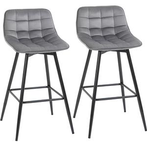 HOMCOM Set 2 Sgabelli Alti Nordici con Schienale e Poggiapiedi in Velluto Grigio, 45x47x88 cm