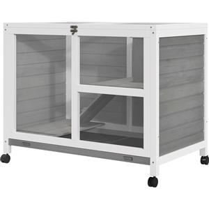 PawHut Conigliera in Legno a 2 Livelli con Casetta, Rampa e Vassoio Estraibile per Conigli e Porcellini d'India, 91.5x53.3x73cm, Grigio