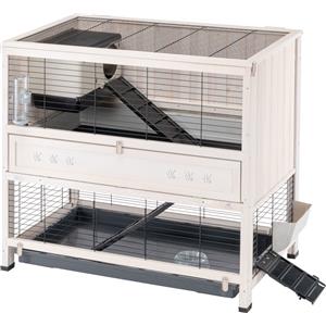 Kerbl Pet Casetta per roditori - Casa accogliente 116x45x62 cm, Bianco/Grigio con 2 porte e vasca zincata