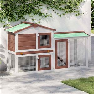 PawHut Conigliera da Esterno in Legno di Abete con Casetta, Vassoio e Rampa - Spaziosa per Conigli e Roditori 122x62.6x92 cm, Grigio e Bianco in Altri animali