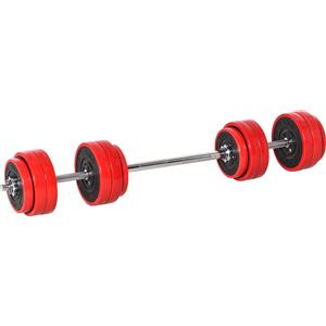 HOMCOM Set 2 in 1 Bilanciere e Manubri Pesi da 30kg, Dischi con Rivestimento in Plastica Antigraffio, Rosso e Nero|Aosom