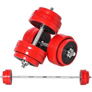 HOMCOM Set di Manubri Pesi 2 in 1 da 30kg, Dischi con Rivestimento in Plastica Antigraffio, Rosso e Nero
