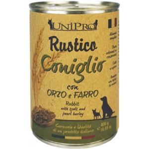 Unipro Rustico Cibo Umido per Cani con Coniglio, Orzo e Farro - Barattolo da 400g