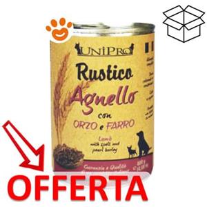 Unipro Rustico Cibo Umido per Cani con Agnello, Orzo e Farro - Barattolo da 400g