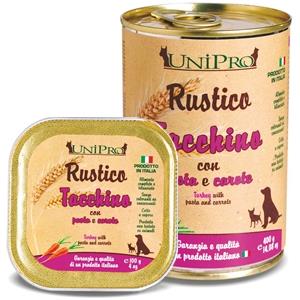 Unipro Rustico Cibo Umido per Cani con Tacchino, Pasta e Carote - Vaschetta 100g
