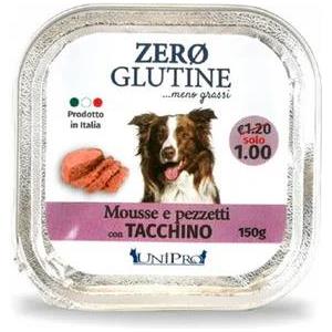 Unipro Zero Glutine Mousse e Pezzetti per Cani con Tacchino - 150g, Alimento Umido Senza Glutine Prodotto in Italia