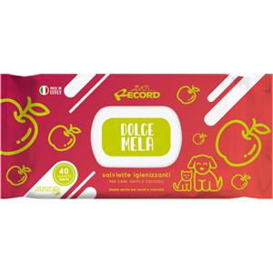 Record Salviette Detergenti Antibatterico per Cani e Gatti - 40 pz, Aroma Dolce Mela, Igienizzanti per Pelo, Zampe, Muso ed Occhi