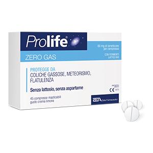 Prolife Zero Gas - Dispositivo Medico per Flatulenza e Gonfiore Addominale - 45 Compresse Masticabili con Simeticone e Fermenti Lattici in Integratori e Vitamine