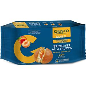 GIUSTO Brioches alla Frutta - 4 Pezzi da 45 g, Fonte di Fibre, Senza Conservanti e Grassi Idrogenati