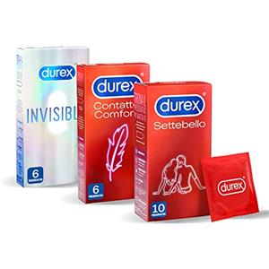 Durex Mix Preservativi Sottili, 6 Durex Invisible + 6 Durex Contatto Comfort + 10 Durex Settebello Super Sottile, 22 Profilattici Assortiti