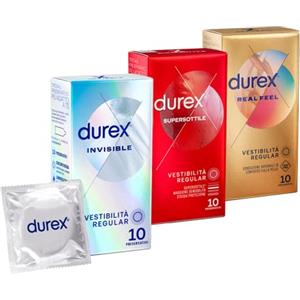 Durex Mix Pack, Real Feel, Supersottile regular e Invisible, 30 Profilattici (3 confezioni da 10pz), Vestibilità Regular