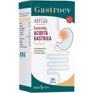 ERBA VITA GROUP SpA Gastro Ev Reflux - Integratore alimentare in 20 stick da 12 ml con estratti vegetali, minerali alcalini e acido ialuronico