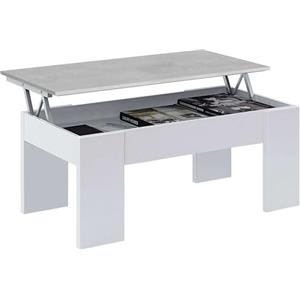 Habitdesign Tavolino Rialzato Modello LC - Piano Elevabile, 100x50 cm, Cemento e Bianco Artik