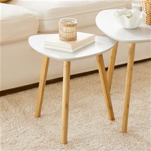 SoBuy Set di 2 Tavolini Sovrapponibili in Bambù Bianco - Grande 55x55x45 cm e Piccolo 40x40x40 cm