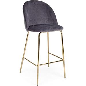 KONTE.DESIGN Set di 2 Sgabelli Bar CARRY Grigio con Seduta Imbottita e Struttura in Acciaio Cromato Oro